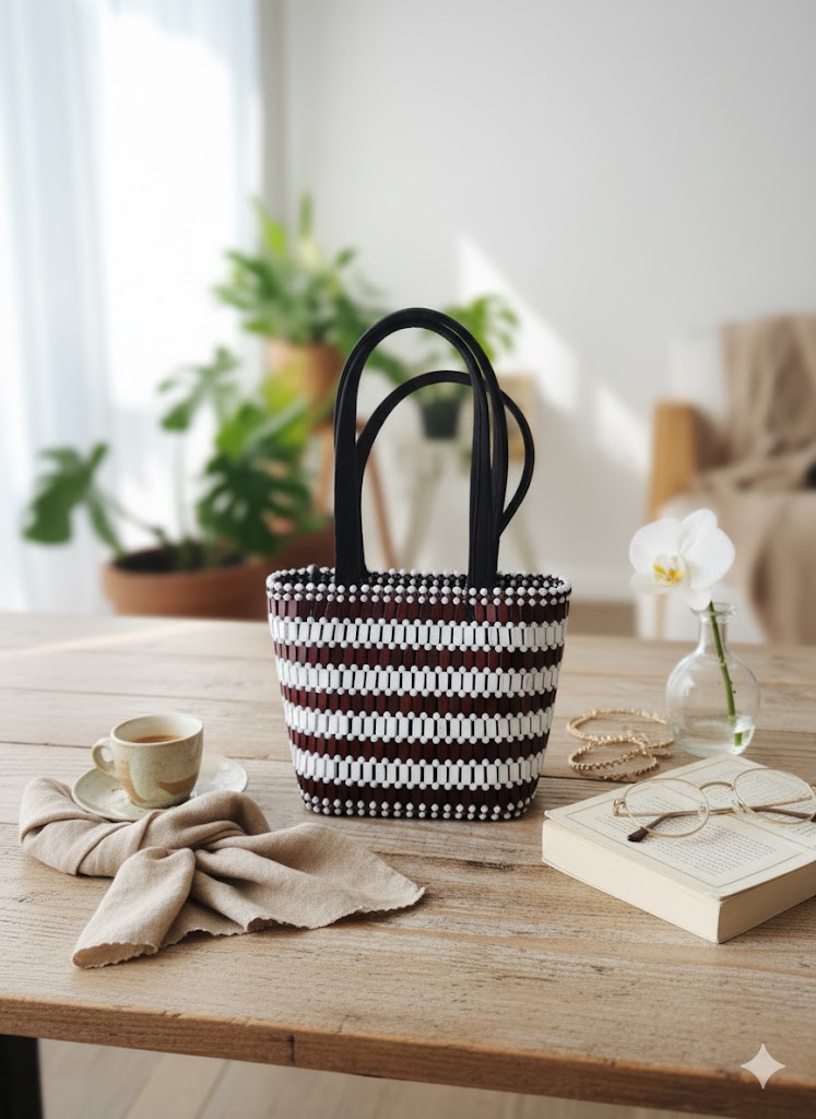 Each of our small handbags is designed with both style and functionality in mind. Made with local materials and adorned with delicate beadwork, they’re an ideal everyday accessory with a story.